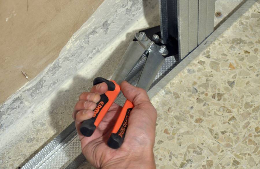 - крепление направляющих профилей с помощью перфоратора, шуруповерта и саморезов;