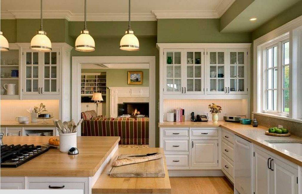 Если хотите оформить всю кухню, выбирайте нежные оттенки зеленого.