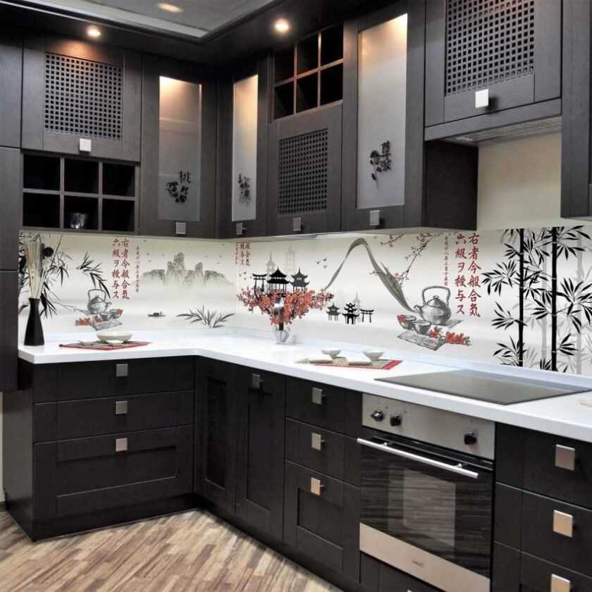 Уникальные фартуки с изображением узоров, рисунков, природных или городских пейзажей, с имитацией природного камня, кирпичной кладки, текстуры древесины превращают обычное помещение в комнату люкс.