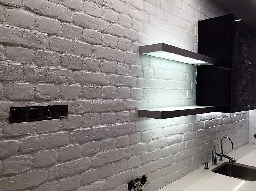 Выбор подходящего цвета кирпича. В маленьком кухонном помещении рекомендуется выбирать материал светлых тонов. Тёмным кирпичом желательно оформлять кухню с достаточным уровнем освещения.