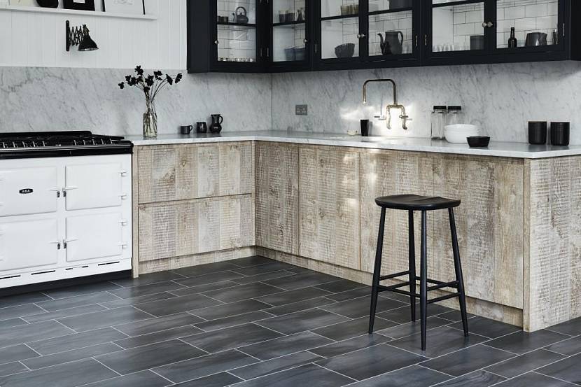 К полу на кухне также предъявляются определенные требования, главным из которых является наличие ровного основания. Отделку пола в этом помещении можно выполнить с помощью нескольких материалов: