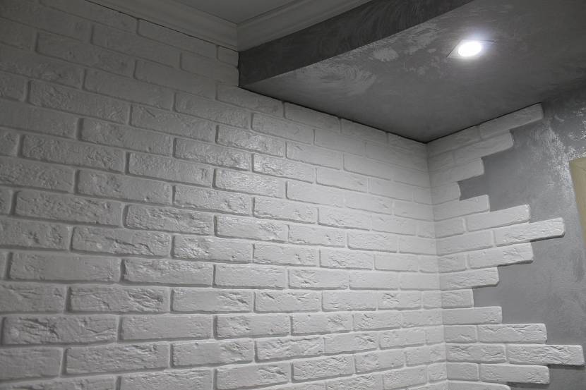 Стены под кирпич являются достаточно смелым и ярким интерьерным решением. Изделия имитирующие небольшие кирпичики привносят в интерьер особый шарм. Довольно часто для коридора применяют отделку белого цвета, она делает помещение более выразительным и необычным.