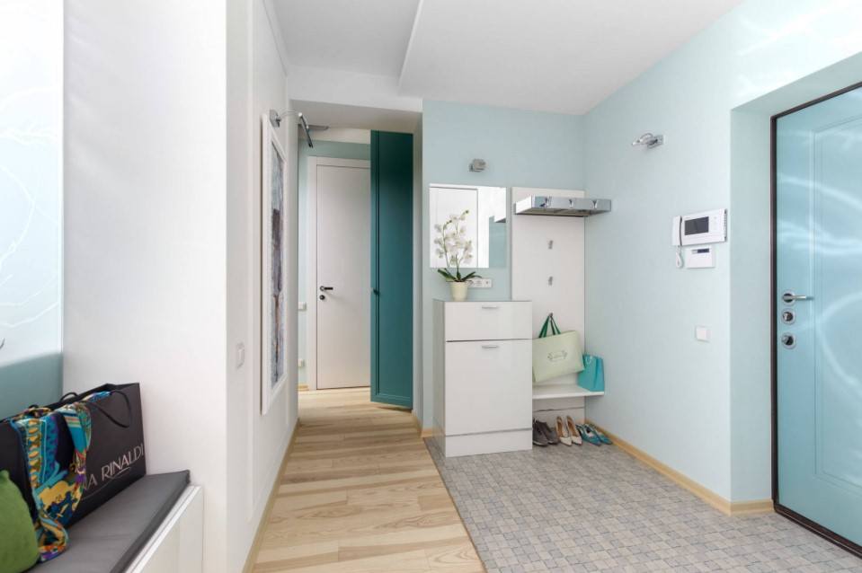 • Для миниатюрной прихожей оптимальными вариантами станут бежевый, серебристый, серый, голубой, молочный, светло-коричневый тона. Все они относятся к спектру холодных расцветок, являясь универсальными вариантами для разных интерьеров.