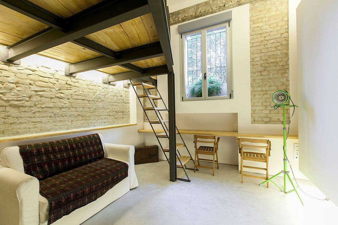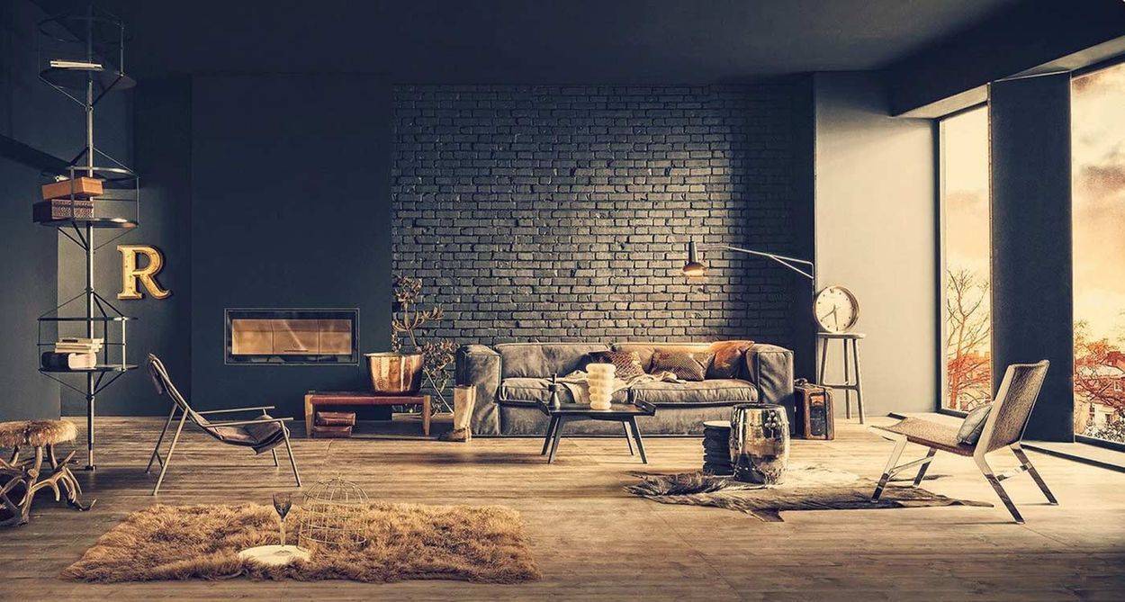 Главный акцент лофта — кирпичная кладка. Совершенно не обязательно, чтобы все стены были из кирпича или его имитации, это вполне может быть одна стена, скомбинированная с другими, на которые нанесена штукатурка (не идеально ровно, а с небрежными «дефектами»), либо же они могут быть окрашены в холодный цвет.