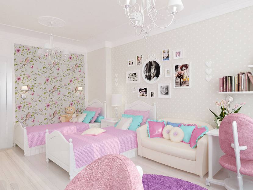 Оформление цветовой композиции помещения — один из важнейших пунктов дизайна детской, так как правильно выбранные оттенки — залог эстетики. Для спальни для двух девочек рекомендуют следующие варианты сочетания тонов: