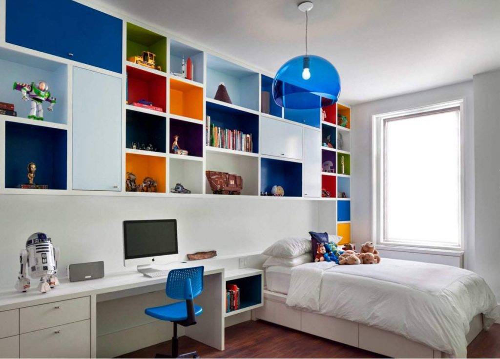Интересы у детей этого возраста другие. В качестве развлечений подойдет грифельная, магнитная доска, мольберт для рисования, стол для игры в шахматы, складывания конструкторов, пазлов – единого правила нет, интерьер зависит от хобби ребенка. Лучшим декором послужат глобусы, настенные карты, изображения Солнечной системы, ботанических садов, океанов. Обустройте специальное место для наград, кубков – они не должны лежать в ящиках, размещайте их на видном месте. Школьникам, подросткам потребуется много места для хранения личных вещей – закрытые шкафы, комоды, полки, этажерки – каждый предмет должен находиться на своем месте в доступности.