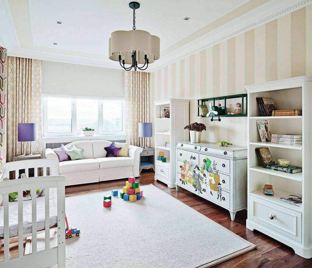Рекомендуется делать комнату максимально простой и минималистичной, а с возрастом добавлять более сложные предметы, игрушки и более яркие краски в дизайн детской.