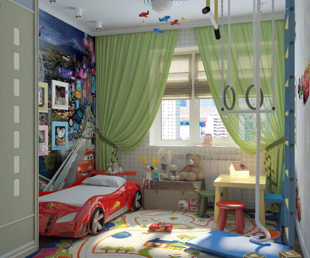 Ребенку важно ощущать тепло и уют в своей комнате. Поэтому должны присутствовать мягкие подушки, занавески длиной до пола, мягкие игрушки или модели машинок