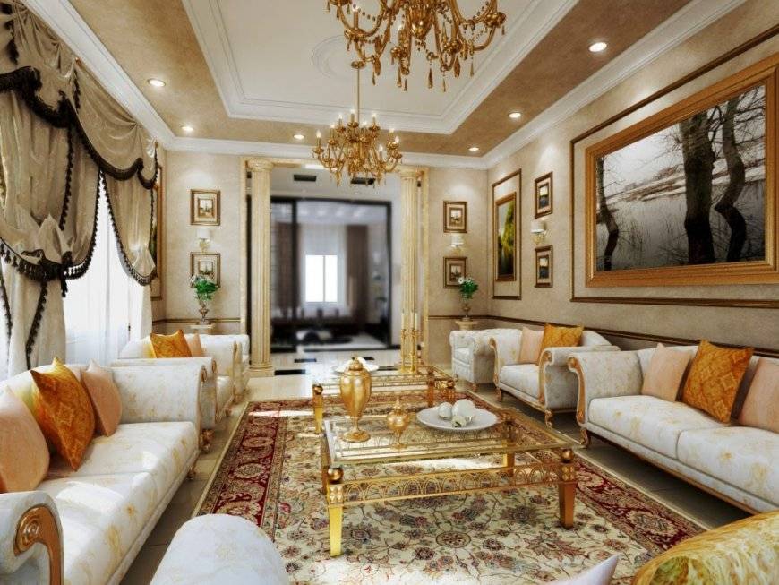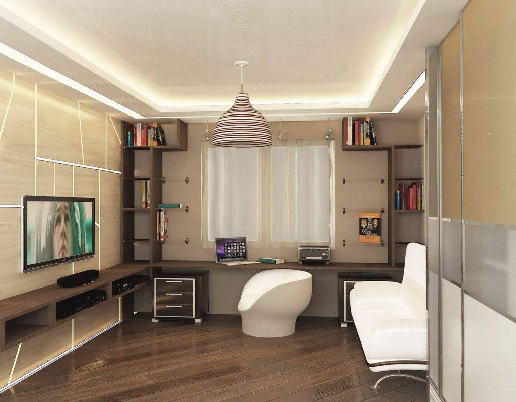 В просторной комнате найдется место для сложных гипсокартонных потолков. Они подойдут для зонирования и планирования освещения. И для создания креативных дизайнерских решений.