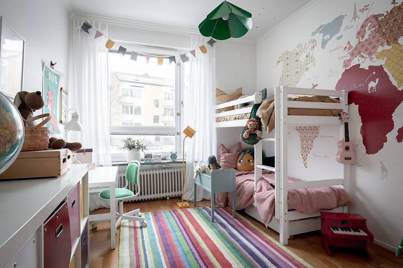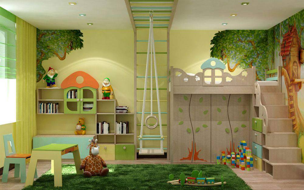Также в комнате можно выделить место и установить шведскую стенку, вашему малышу она точно будет по душе.