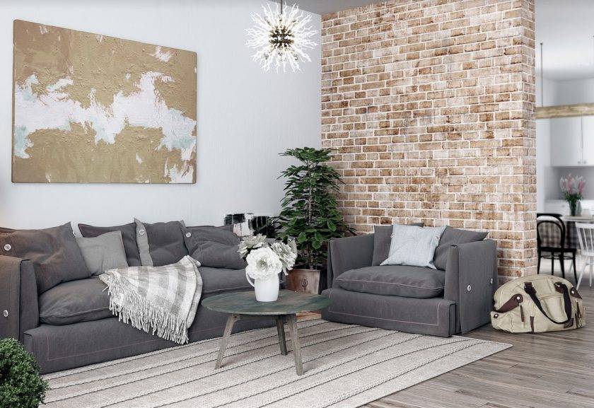 - Необработанные кирпичные или оштукатуренные стены гармонично смотрятся с холодными бетонными полами.