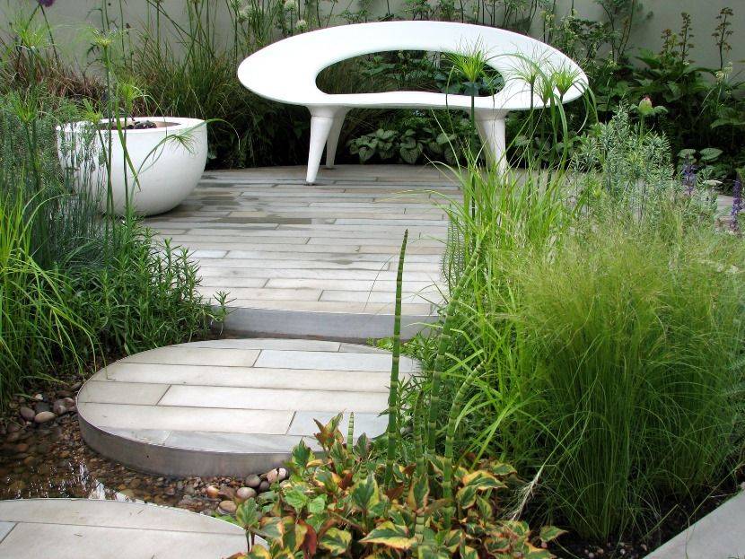 Модерн – это извилистые обтекаемые формы, элегантность и дороговизна. Большее значение тут имеют даже не растения, а малые архитектурные формы и аксессуары. Сад в стиле модерн потребует серьезного и постоянного ухода, все элементы в нем должны быть не просто декоративными, но и функциональными.