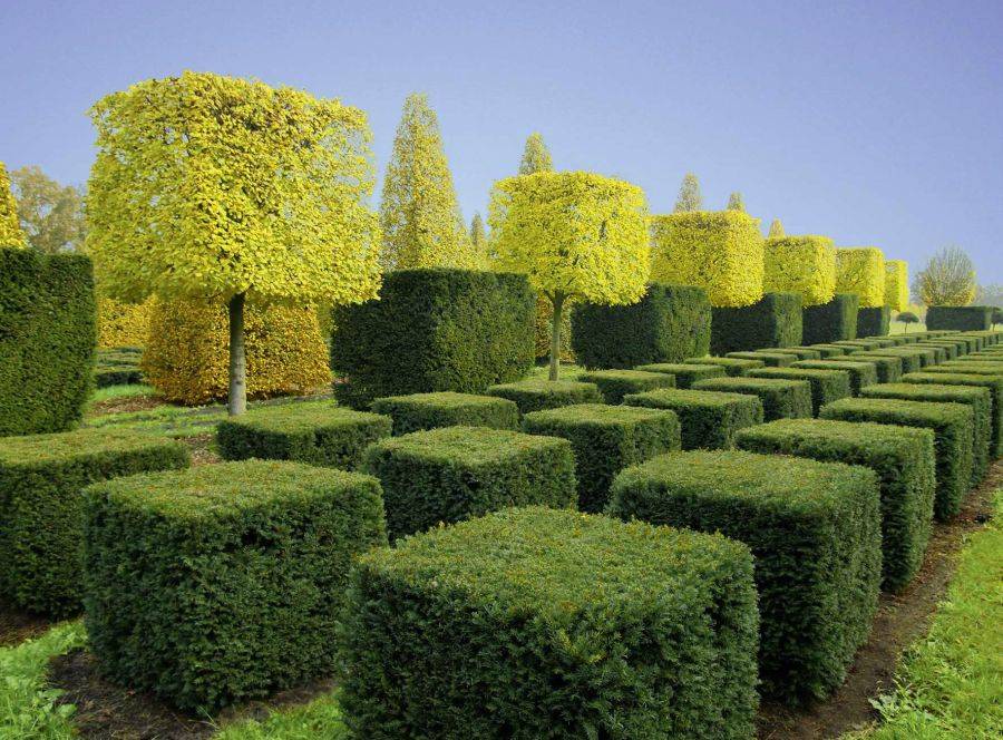 Одним из востребованных растений во французском стиле является хвоя. Ее используют как растения, отлично поддающееся стрижке и моделирования (туя, ель). Их этих представителей флоры можно создать любую фигуру. Многие вечнозеленые садовые насаждения неприхотливы и не требуют частой стрижки (можжевельник, карликовая сосна).