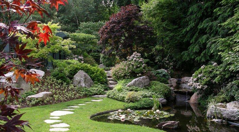 на участке можно организовать ручей или фонтан, но отсутствие водоема не является проблемой.