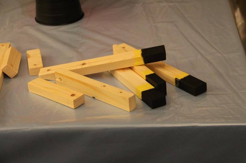 - Далее бруски по 23 и 25 см склеиваются с брусками по 13 см.