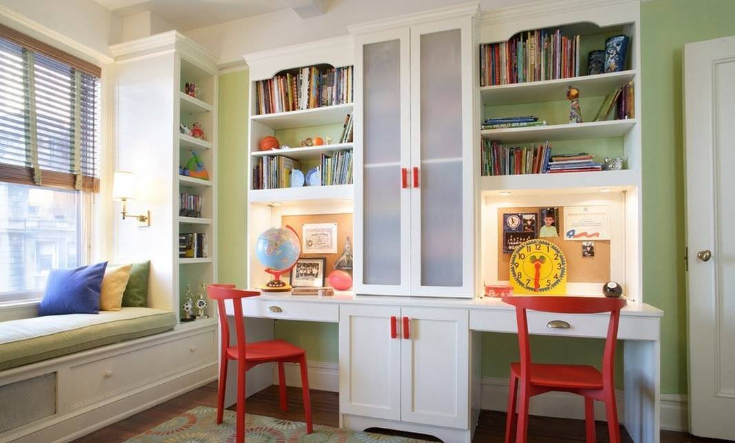 Живущие в одной комнате двое детей школьного возраста должны иметь свое отдельное рабочее место для каждого. В этом случае можно:
