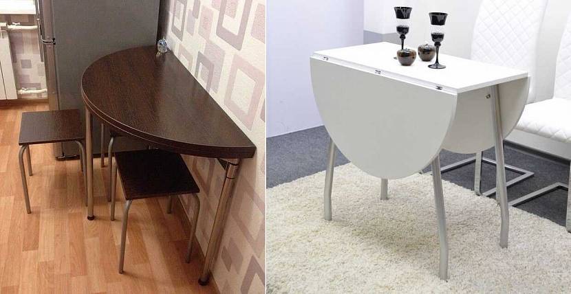 Для маленькой кухни. Круглый стол на кухню в интерьере вписывается не во всякое пространство. В маленьком помещении актуален усеченный вариант — модель полукруглой формы. Реже встречается модель, прикрепляемая ровной стороной к стене или подоконнику. В складном виде такая столешница не занимает места, а в рабочее положение устанавливается при помощи опорной ножки.
