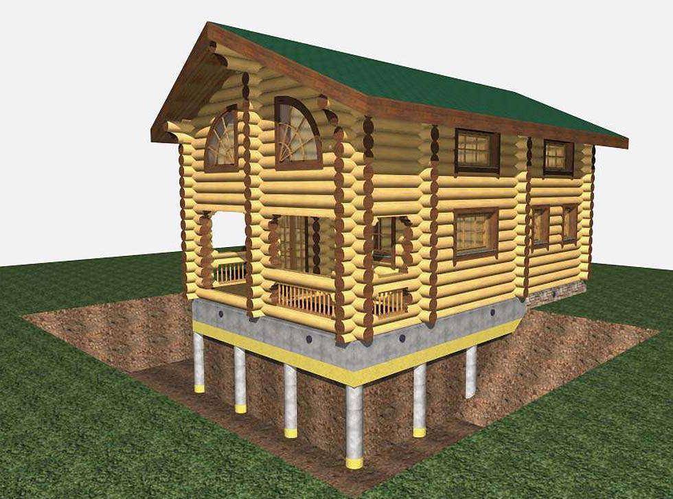 Столбчатый тип практически универсальный, хорошо оправдывает себя, как основа для любых щитовых домов или таунхаусов. Установка столбов происходит в специальные заранее пробурённые лунки, которые делаются по всему периметру здания. Расстояние между опорами рассчитывается индивидуально. Для опор используются натуральные материалы брёвна, природный камень и искусственные составляющие (трубы или железобетонные пасынки).