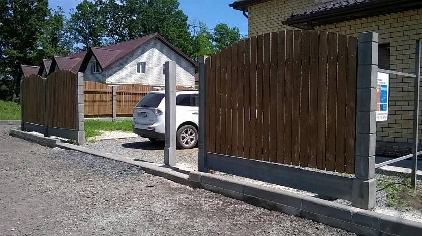 Вид заполнения секций. Нагрузка на столбы значительно различается, будет ли это легкий воздухопроницаемый штакетник, сплошной профнастил или тяжелый кирпич.