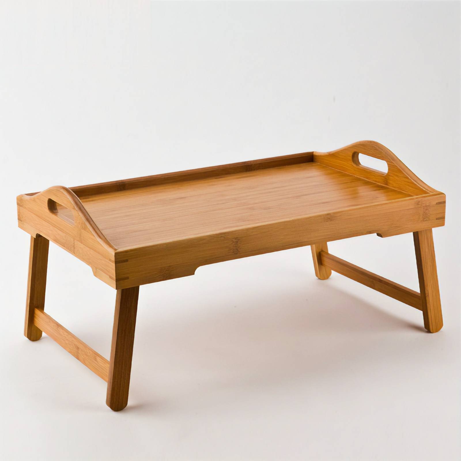 Такой столик-поднос для завтрака станет идеальным решением для тех, кто, находясь в спальне, вынужден работать за компьютером. Этот недорогой вариант столика позволит приподнять поверхность, на которой установлен ноутбук, создать наклон для поверхности для удобства размещения книги или рабочей тетради.
