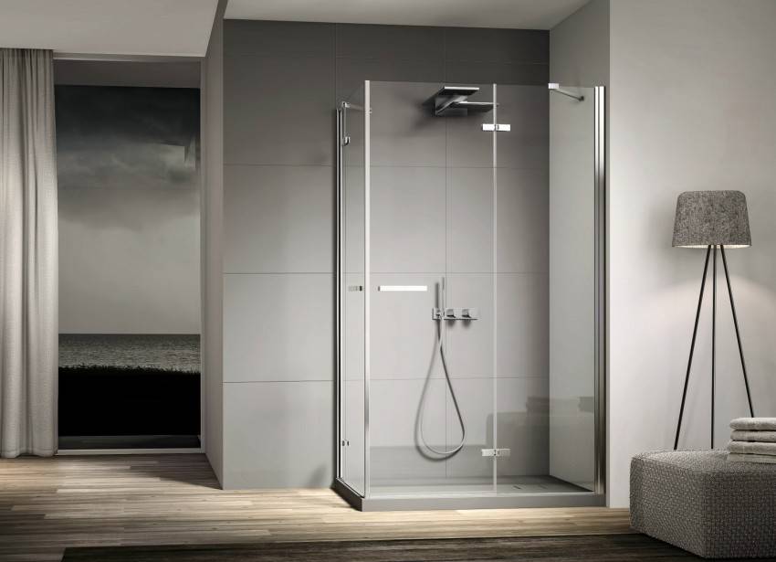 Эти дверцы обязательно должны быть снабжены ручками, желательно хромированными. Нужно иметь в виду, что стеклянная перегородка для ванной такого вида устанавливается в том случае, если из имеющихся четырех панелей 3 располагаются у стены. Данные модели лучше всего подходят для квартир большого размера при наличии в них немалого свободного пространства.