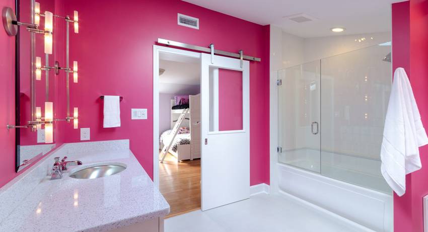Высокая влажность, наличие примесей в воде, отсутствие естественного освещения в ванной комнате требуют тщательного подхода к выбору материалов, из которых будут изготовлены раздвижные двери.