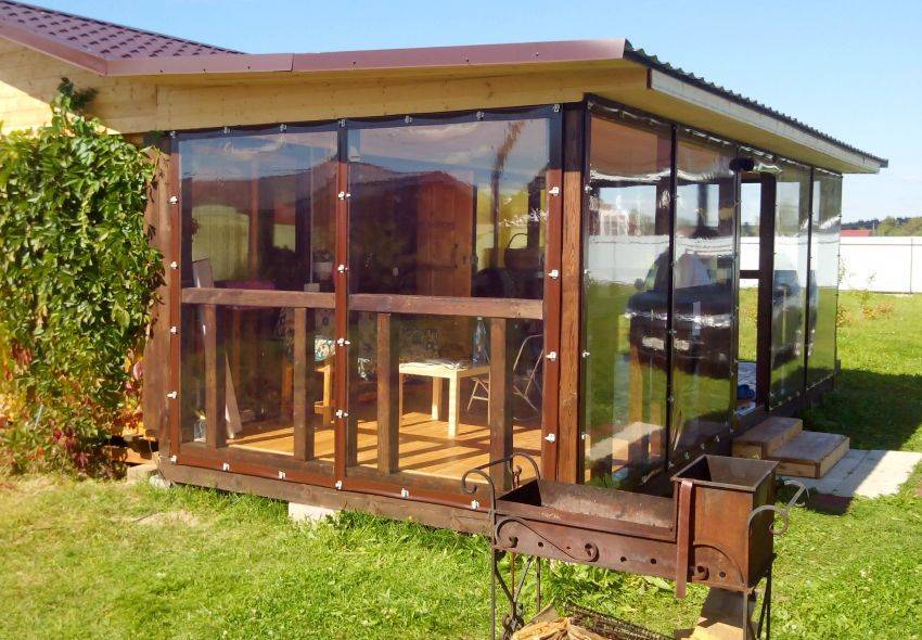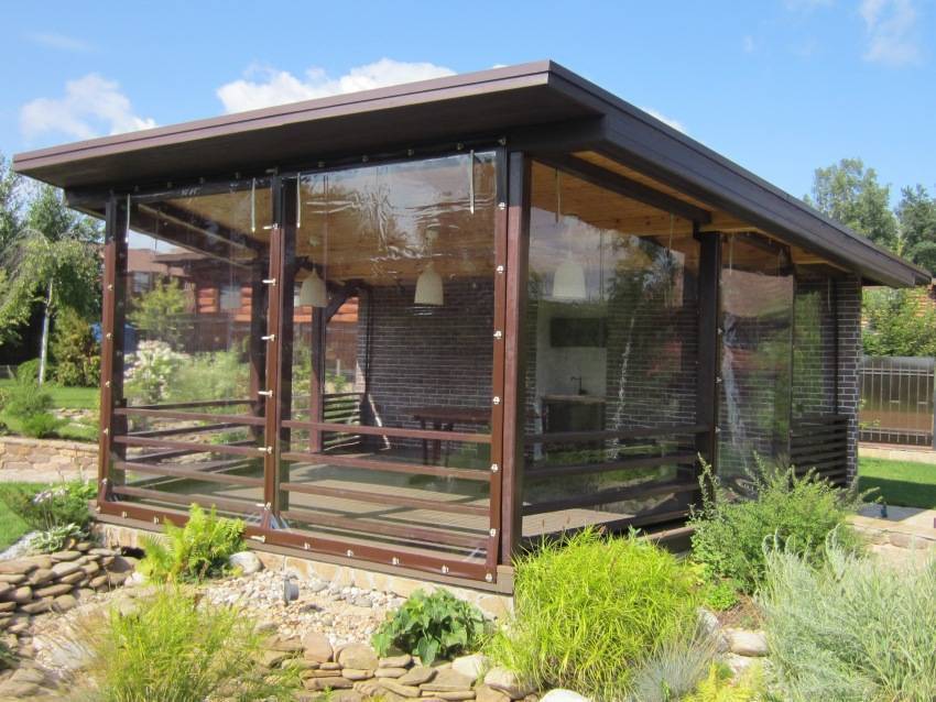 ПВХ-ткань можно использовать для защиты веранд, беседок, террас и других открытых конструкций на участке