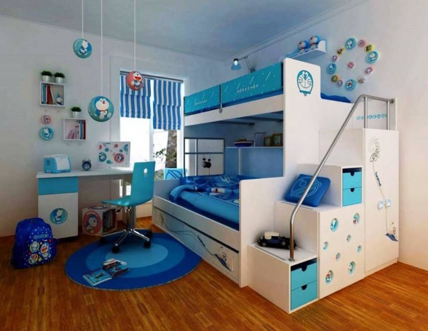 Даже в детстве мальчики более сдержаны в выражении эмоций, чем девочки. Поэтому и вкусовые предпочтения у них разные. Мальчишка никогда не одобрит приторно сладкие оттенки вроде розового, голубого, лимонного и прочих в своей святая святых. Напротив, ему по душе нейтральные цвета, морские оттенки, блеск металла.