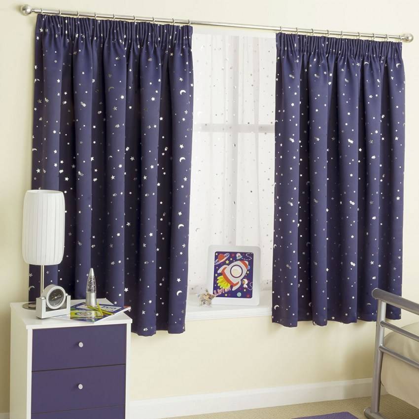 Мальчишка скорее всего предпочтет плотные однотонные шторы «мужского» цвета: синего, серого или даже черного. В отличие от тюля шторы не пропускают солнечный свет, поэтому их можно спокойно выбирать и холодных оттенков, не опасаясь неуютного освещения помещения.
