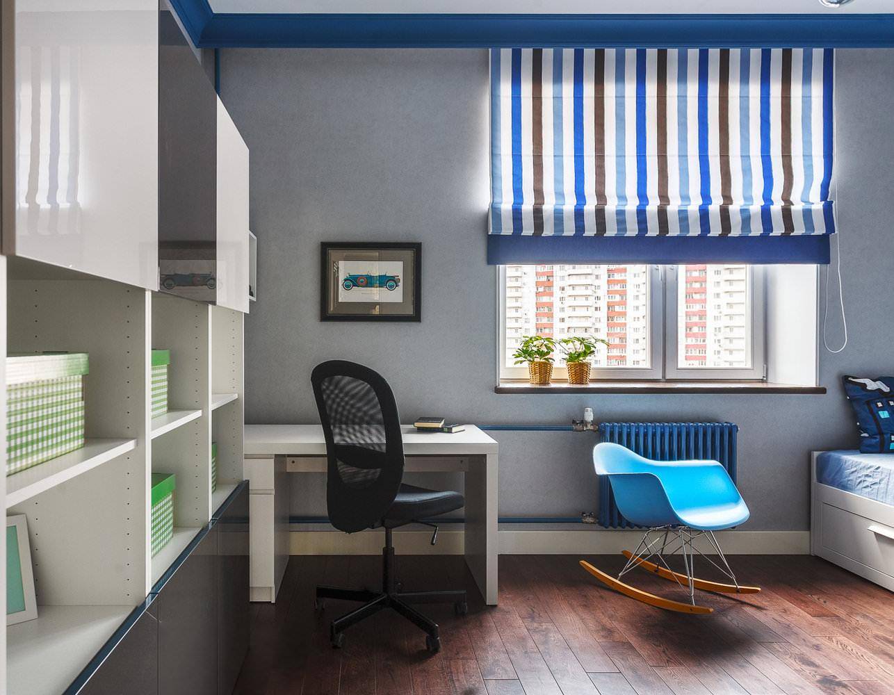 Рулонная штора с мелким принтом в комнате мальчика-подростка