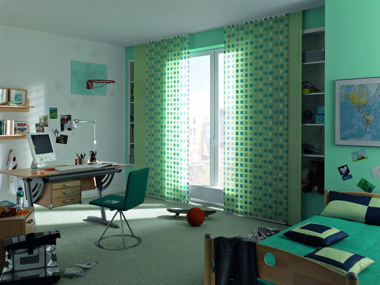 Создавая интерьер для школьников, нужно учитывать их пожелания. Иногда это могут быть самые смелые и контрастные сочетания, например, бело-черная расцветка, или зеленый с желтым. Некоторым подросткам нравятся занавески «под джинс» или орнаменты в стиле стрит-арт