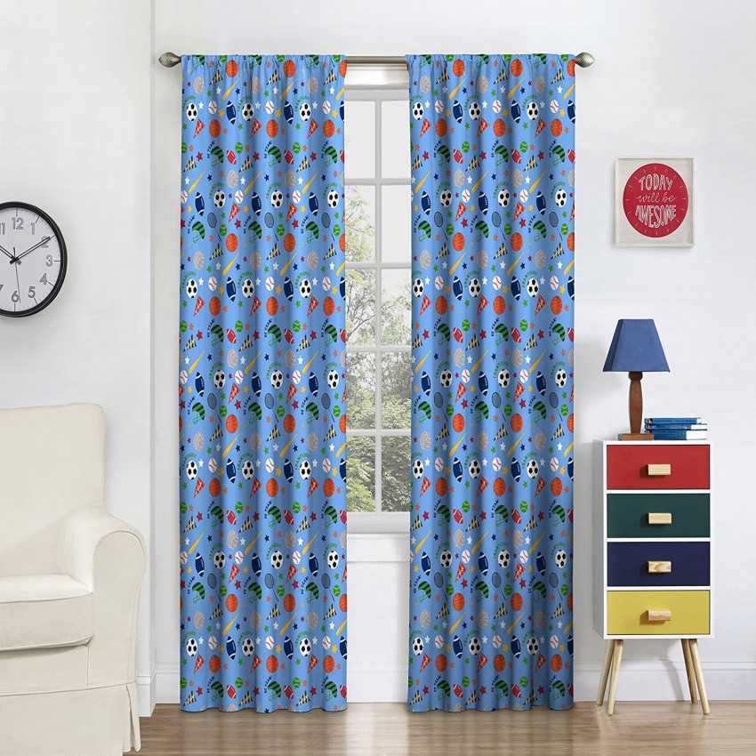 Яркость, красочность присутствует в таких занавесях и поднимает настроение мальчугану, обитающему в такой комнате