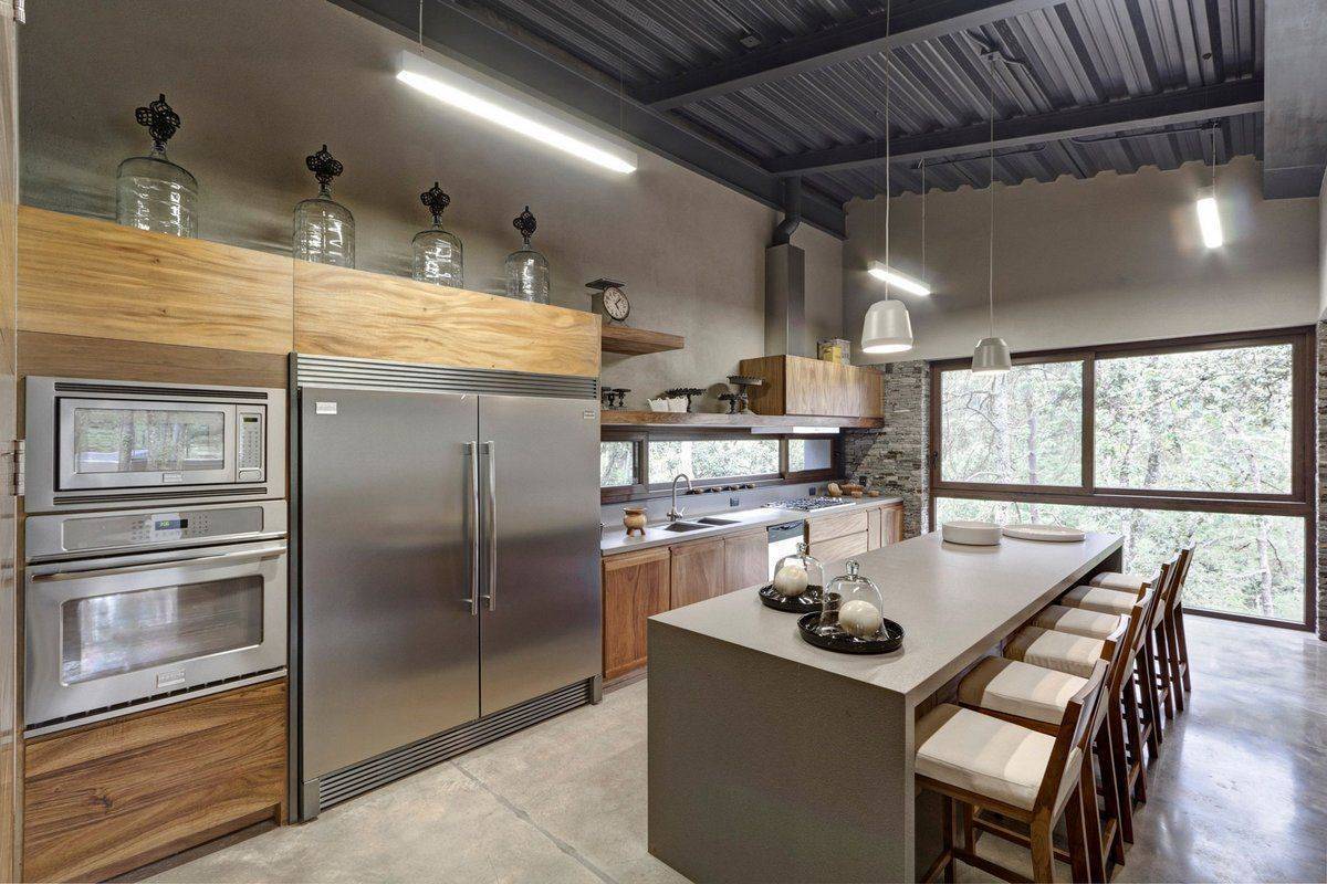 Для этого стиля характерны грубые необработанные поверхности, открытые коммуникации и т. д. Потолок окрашивают в тёмный цвет, создают имитацию балок и выступов, кирпичной кладки из клинкера или панелей.