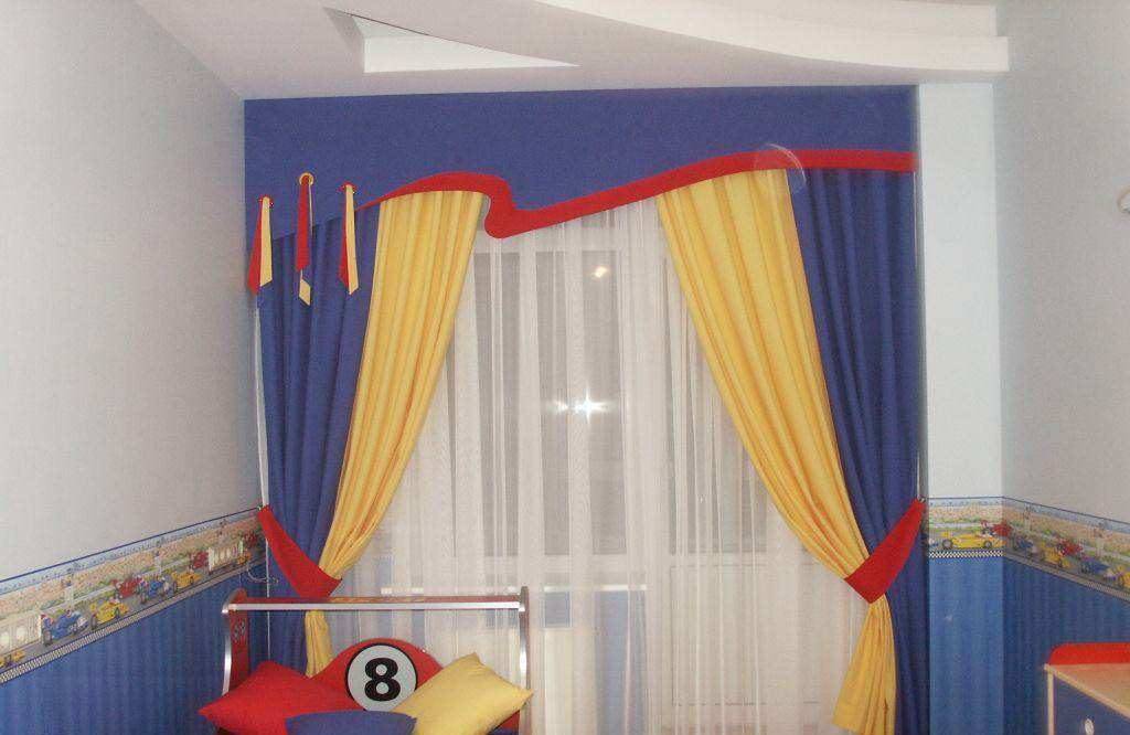 Такие изделия хороши для комнат взрослых, но в детских смотрятся грубо и неуместно. К другим вариантам, с которыми не стоит экспериментировать, являются австрийские занавеси. Фестоны, которые они из себя представляют в собранном виде, будут смотреться странно в мальчиковой комнате. Нежелательно вешать здесь и асимметричные занавеси на одну сторону.