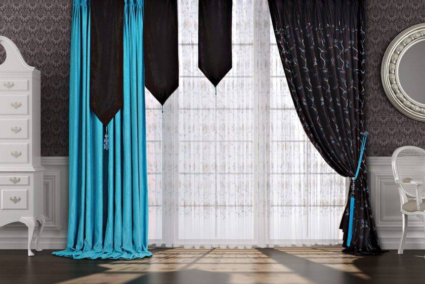 Комбинировать шторы из двух цветов можно в комнате любого назначения. При этом используют плотные, прозрачные, длинные, короткие занавески. Дизайнеры стараются выбирать подходящие сочетания оттенков, отталкиваясь от общей стилистики.