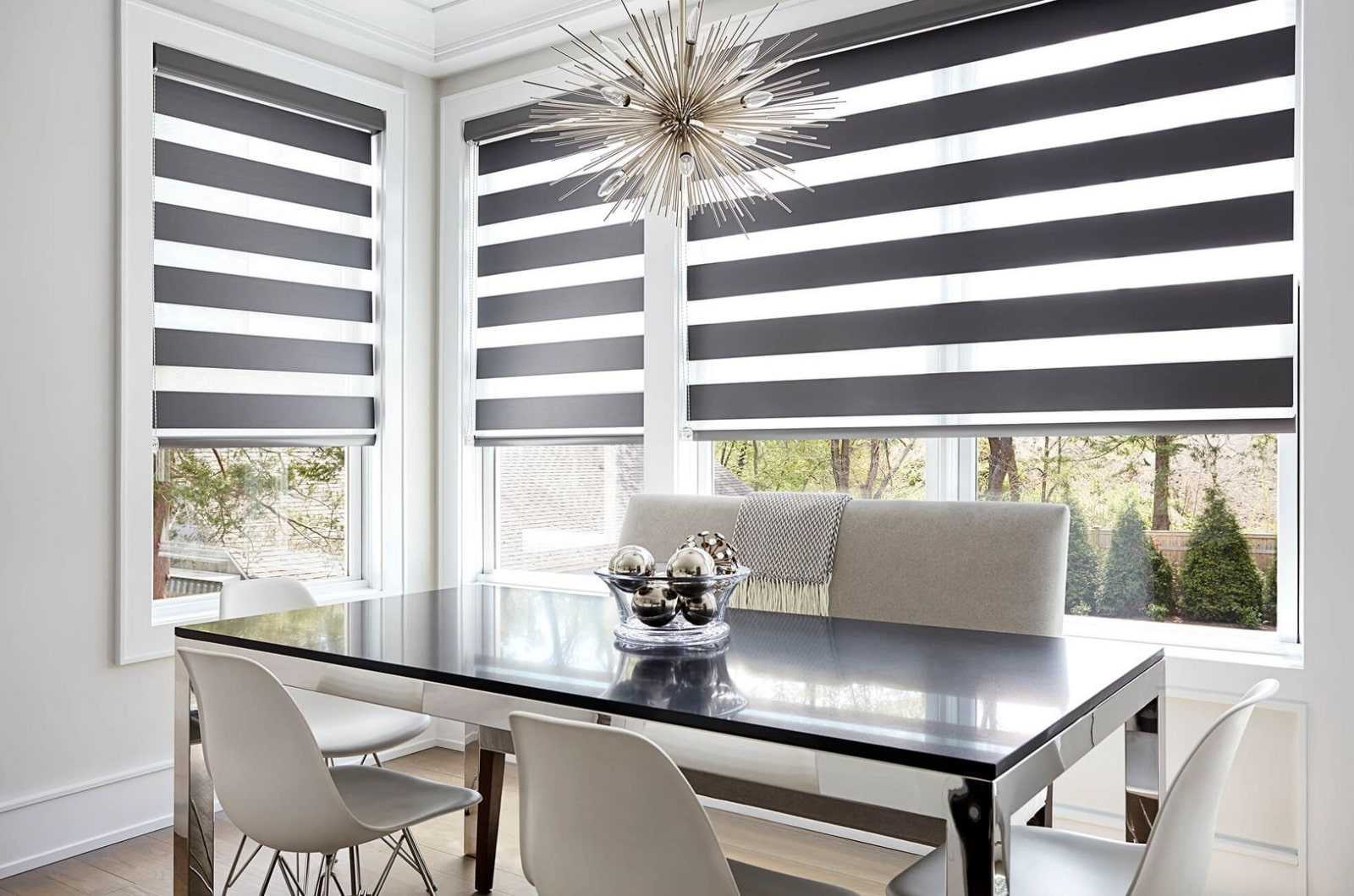 Бело-черные шторы – классическое сочетание темного со светлым, способно придать интерьеру четкости и безупречности.