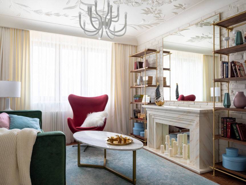 Тут мы остановимся, ведь этот список бесконечный и может быть дополнен вашей безграничной фантазией. Смелые, необычные сочетания цветов, манипуляции с аксессуарами и драпировкой, многоплановые и разнофактурные композиции – эти и другие приемы окажутся подходящими для гостиной.