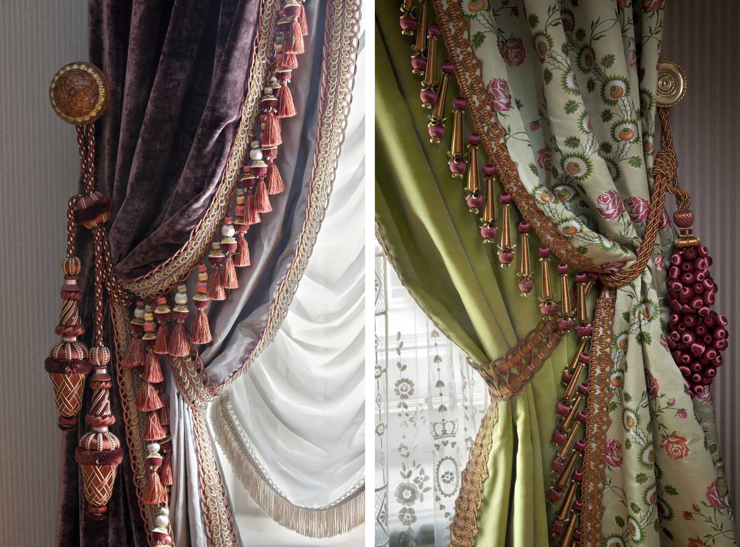 Популярно использовать различные декоративные элементы: кисти, подхваты, ламбрекен.