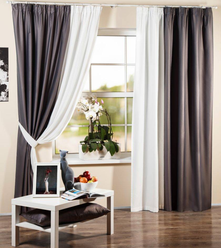 Существует несколько принципов как правильно скомбинировать шторы двух цветов.