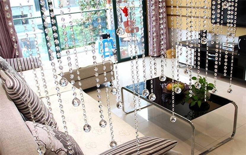 - классический интерьер помещения отлично дополнится шторами из хрустальных бусинок;