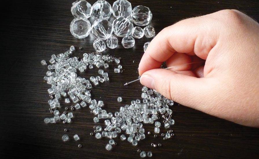 Следующий шаг – выбор подходящей основы, на которую будут нанизываться элементы. Леска отличается прочностью. Капроновые и шерстяные нити нравятся рукодельницам удобством в работе: они прочные и нескользкие. Можно использовать тесьму, атласные ленты, резинки.