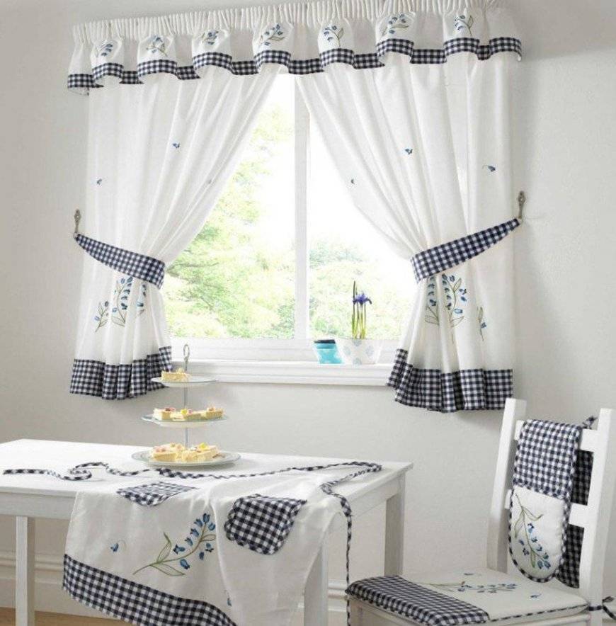 Прованс тоже приветствует легкие ткани, цветочные или клеточно-полосочные принты. Нежные занавески для кухни можно сделать из белого хлопка, украсив их вышивкой крестом либо гладью – небольшие цветочные мотивы, бабочки или птички станут украшением окна. Можно оформить шторки яркой оборкой в клетку, клетчатыми подхватами или сделать из яркой ткани банты и закрепить их сверху, ближе к гардине.
