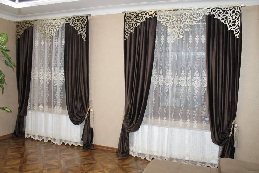 Относясь к подбору интерьера тщательно, он становится намного выразительнее. Чаще всего дизайнеры задействуют фактурные ткани для штор, способствующие созданию ламбрекенов, складок и пр.