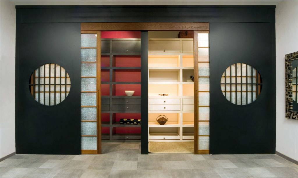 Главный отличительный признак — двери заменяют собой стену. Используются для зонирования помещения. Позволяют разделить комнаты на несколько секций, если в проекте квартиры не предусмотрены двери в определенной зоне. Вариант применения таких дверей — квартира-студия. Чаще всего изготавливаются из стекла или пластика.