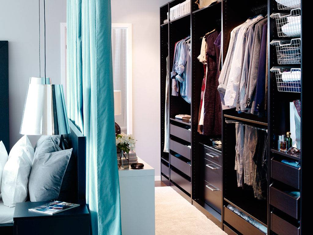 Если планируется снять массивную дверь шкафа или гардеробной, то до установки легкой двери можно поэкспериментировать со шторами