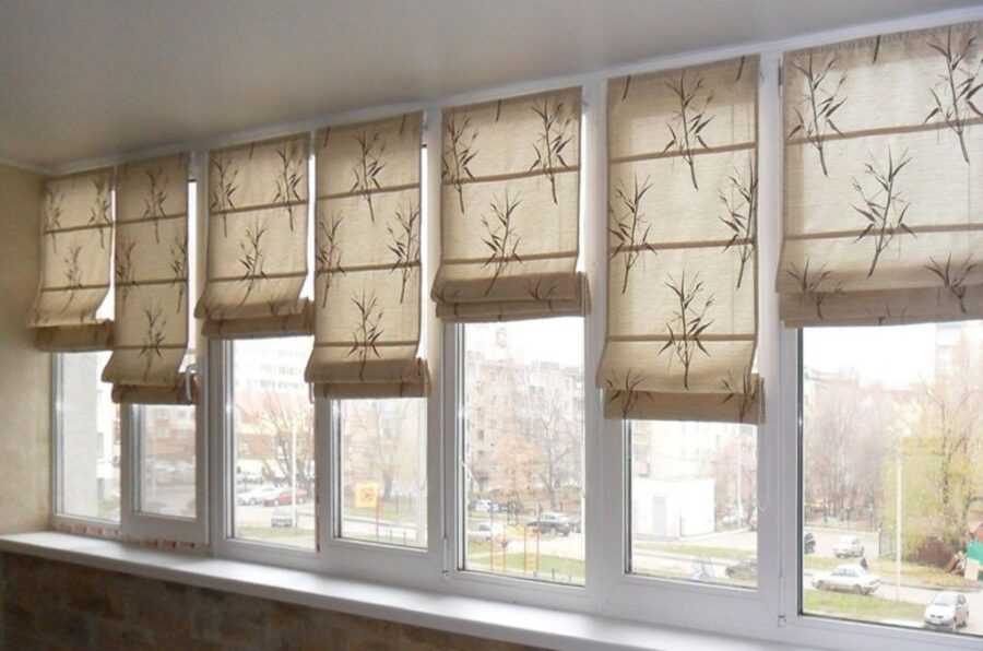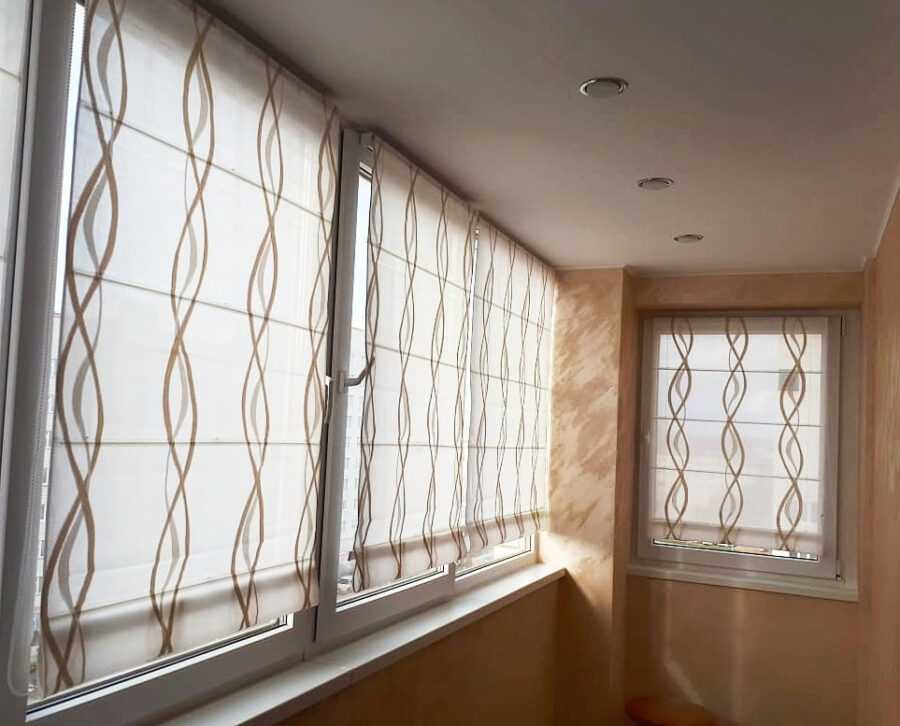 Для маленького балкона подходят рулонные системы, римские, австрийские и классические.