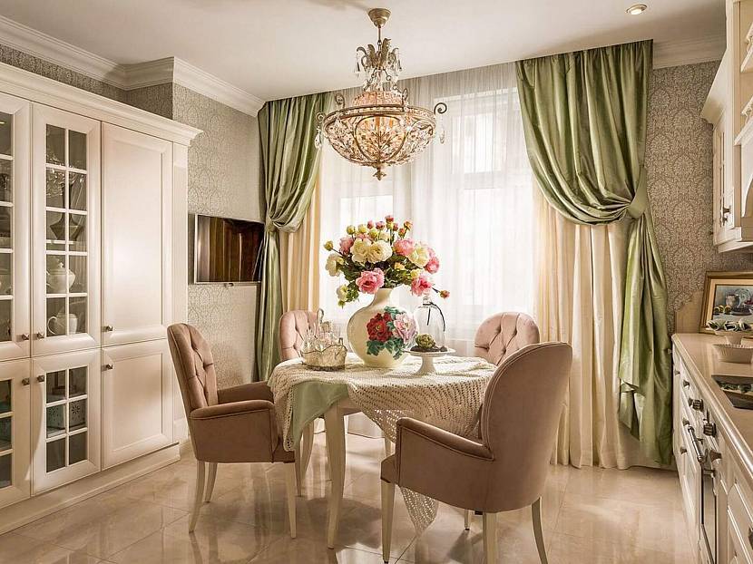 Светлые и спокойные оттенки любых цветов помогут сделать помещение уютным и располагающим для приятной беседы и чаепития. К тому же светлые тона расширяют пространство и делают комнату больше и просторнее.