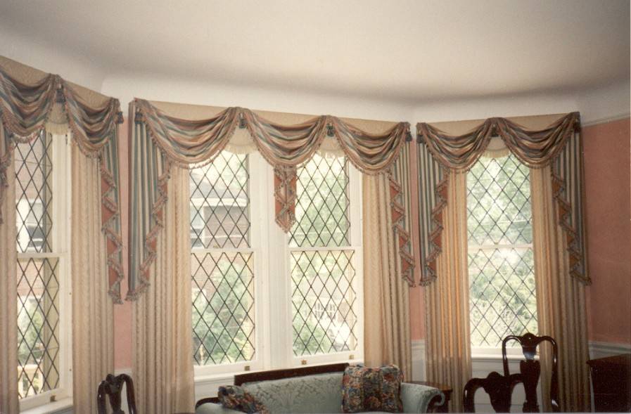 Это мягко провисающие полотна ткани, образующие полукруги с драпировками. Они могут быть симметричными или нет, иногда их украшают по краю отделочными шнурами, бахромой.