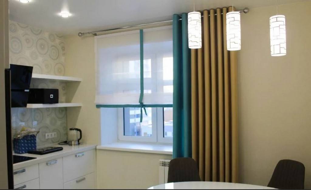Этот вид очень удобный и минималистичный. Пользуется большой популярностью среди тех, кто никак не может определиться, какой вид штор больше подойдет для их кухни.