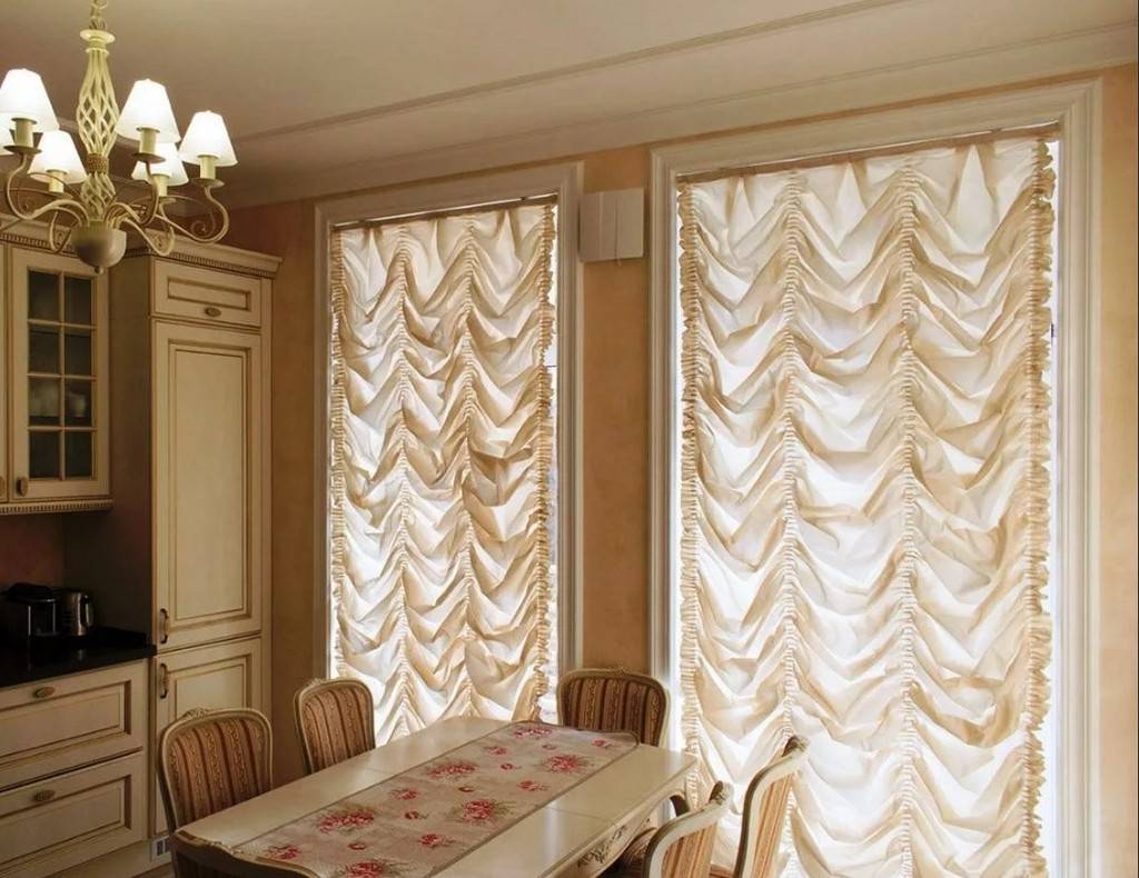 В плане декорирования окон на кухне, этот вид сейчас находится на пике своей популярности. Они довольно универсальны, способны вписаться в любой интерьер, создав красоту, при этом обеспечив удобство использование конструкции.